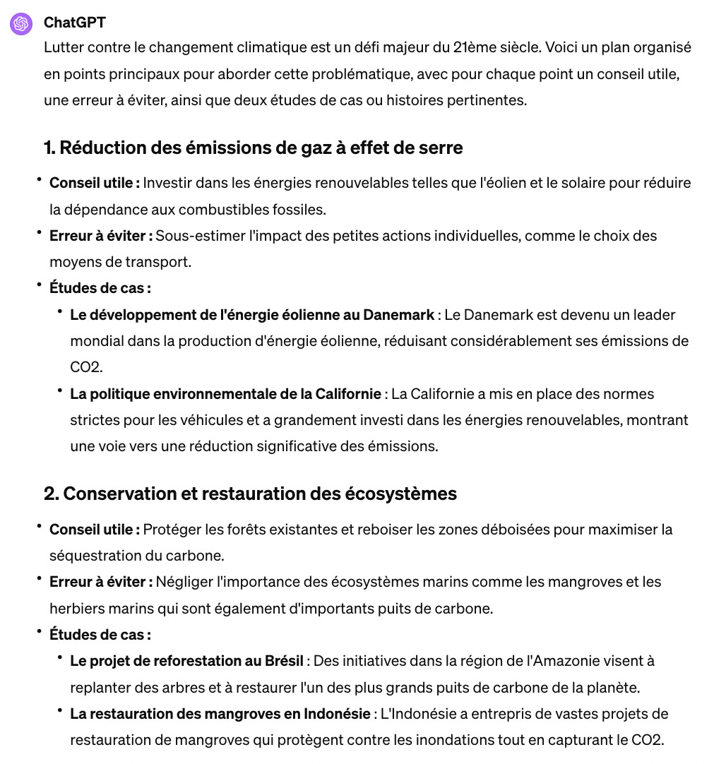 Passer par ce système en plusieurs étapes garantit une réponse plus cohérente que si vous lui demandez de tout faire d’un coup.